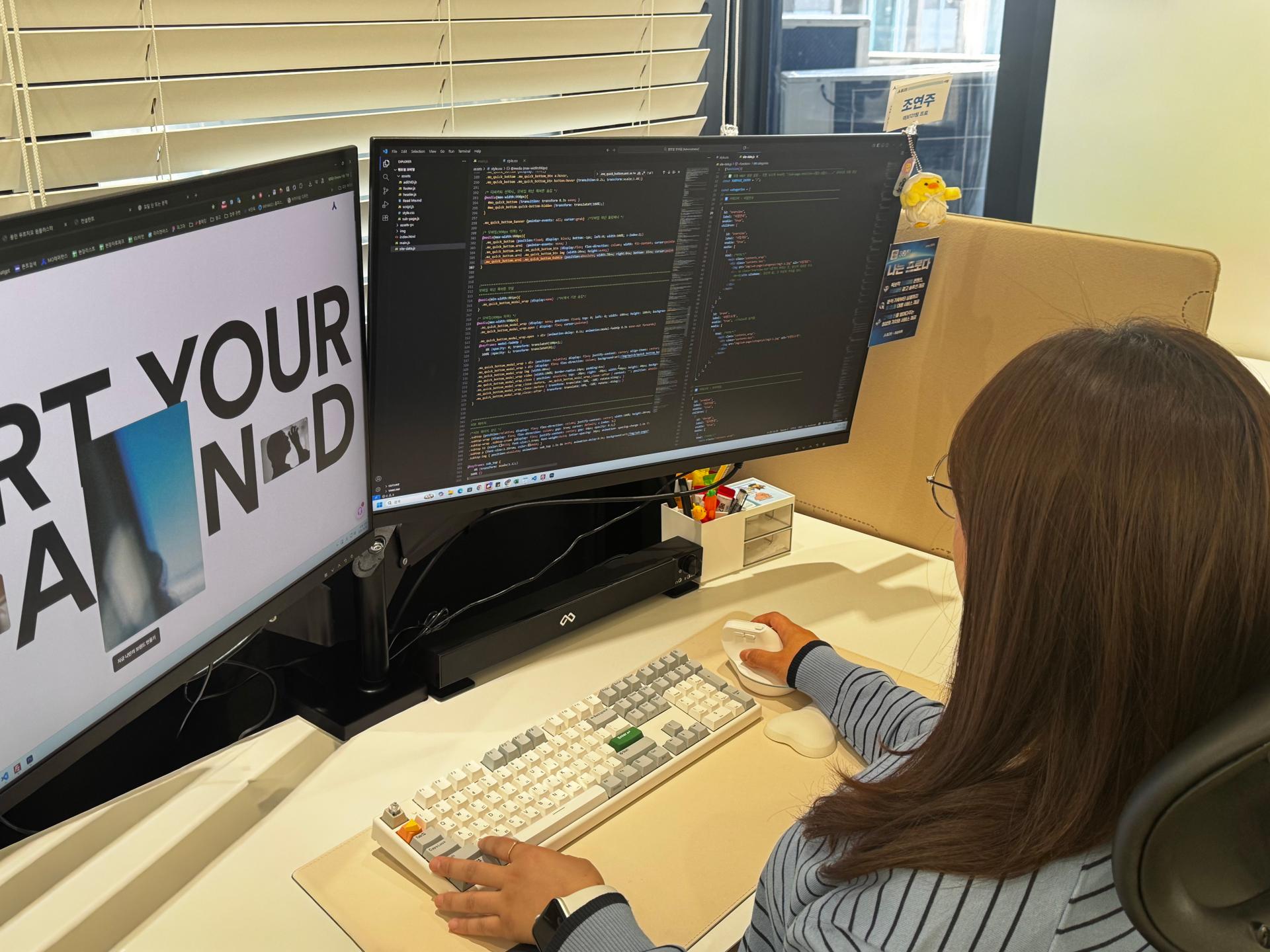저는 여전히 배우는 중이고, 더 잘 만들고, 더 깊이 이해하는 퍼블리셔로 성장하고 있습니다. 환경이 달라지고 일의 형태가 바뀌어도, 변하지 않는 건 하나예요. “조금 더 나은 결과를 만들고 싶다”는 마음. 그 마음으로 오늘도 제 화면을 연구하고 있습니다.